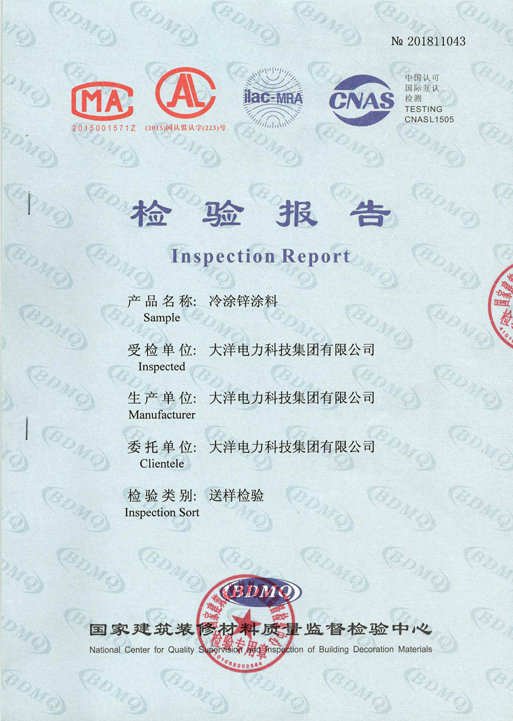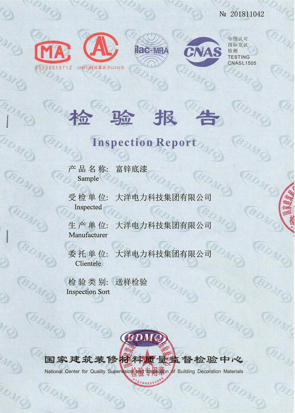 冷涂鋅涂料檢驗報告