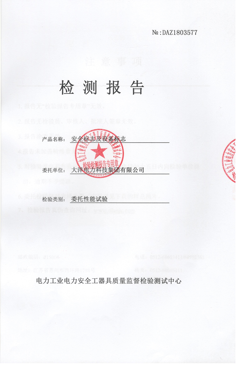 安全標志及設備標志檢測報告