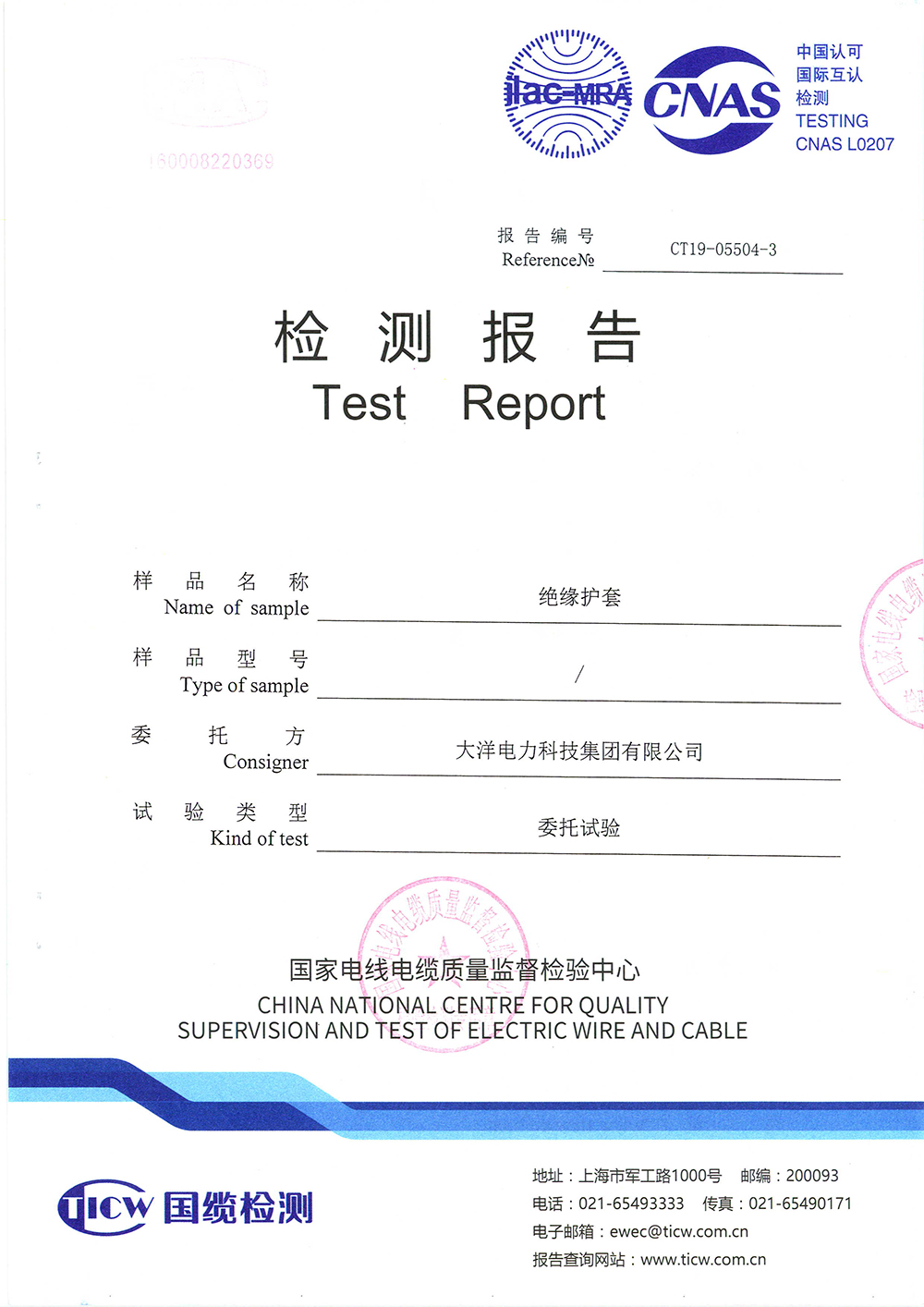 絕緣護套檢測報告